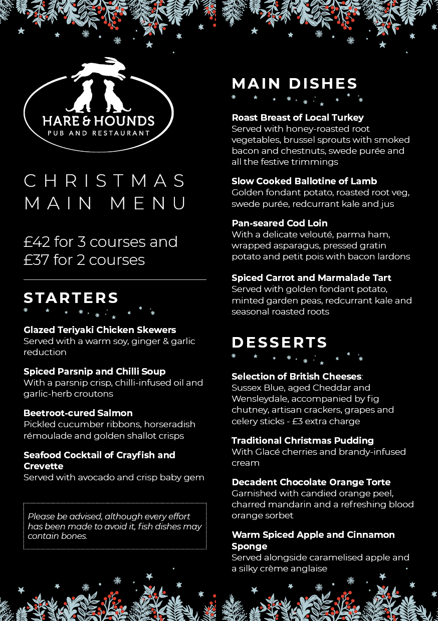 Friday & saturday ~ 12 – 11pm: FOOD 12-2.30pm / 5.30-8.30pm